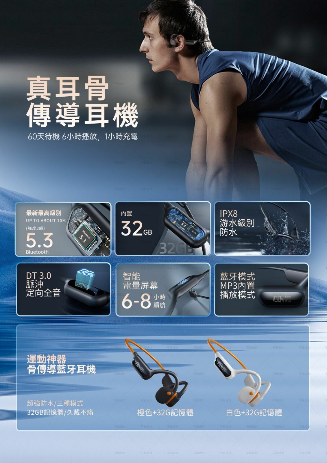 - 真 耳骨傳導耳機 (並非一般空氣傳導小喇叭)