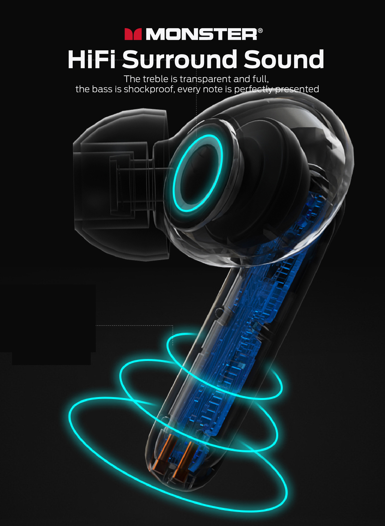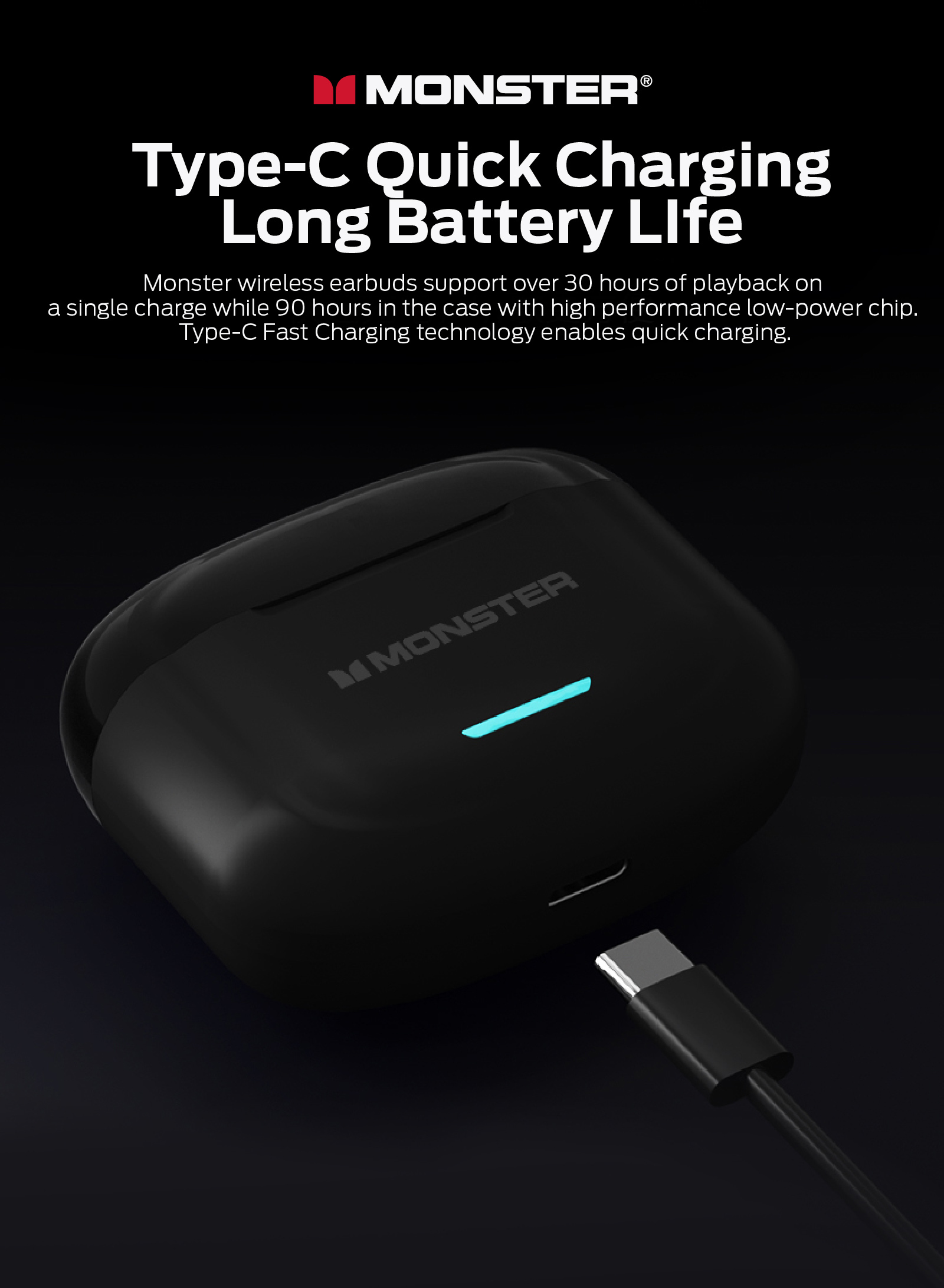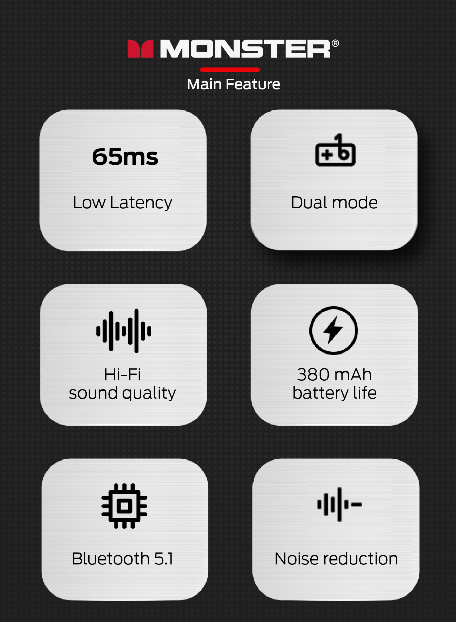 Monster Airmars GT12 真無線主動降噪耳機,65ms超低延遲,開蓋即連,單次使用約7小時,整體續航可達30小時,全新自適應降噪技術,實時判斷所在環境的噪音強度,自動匹配適宜的降噪模式