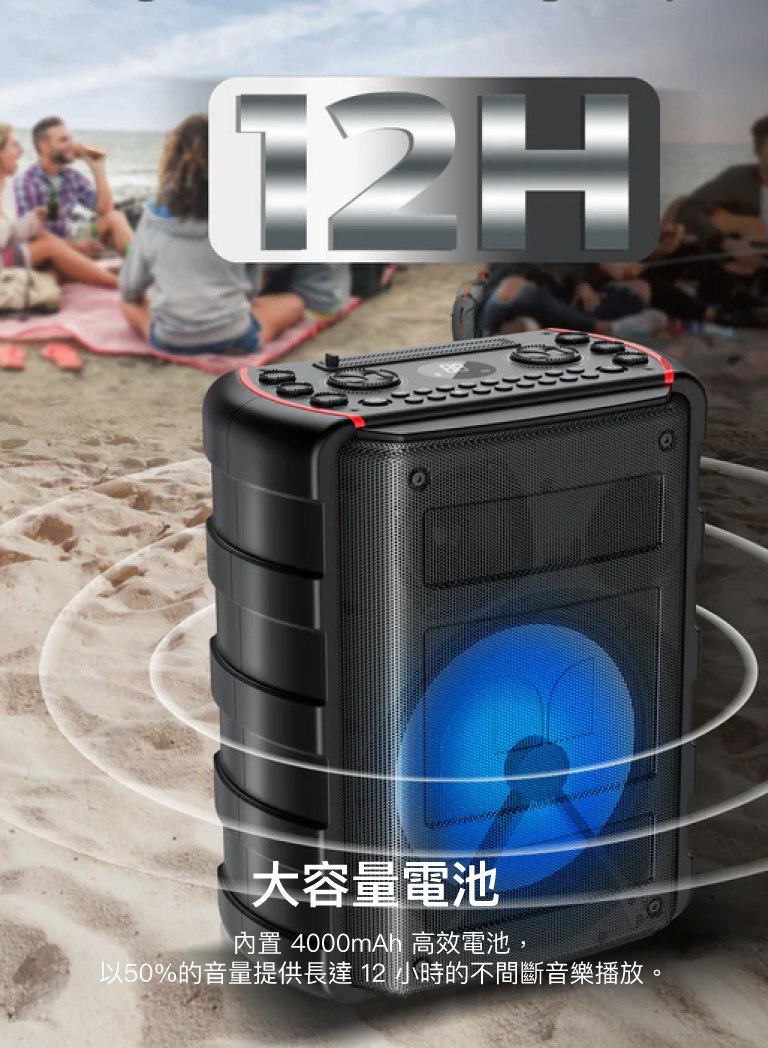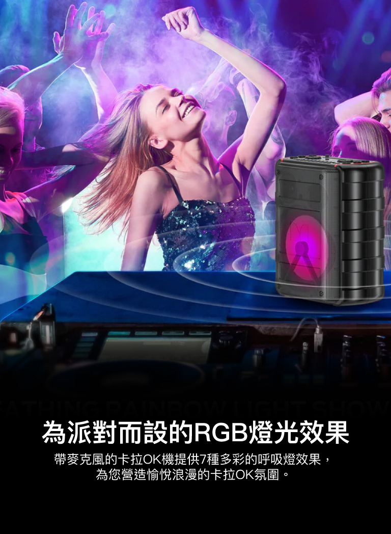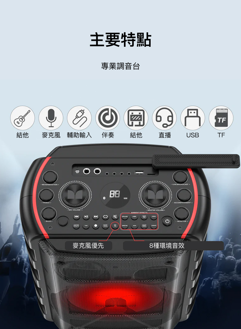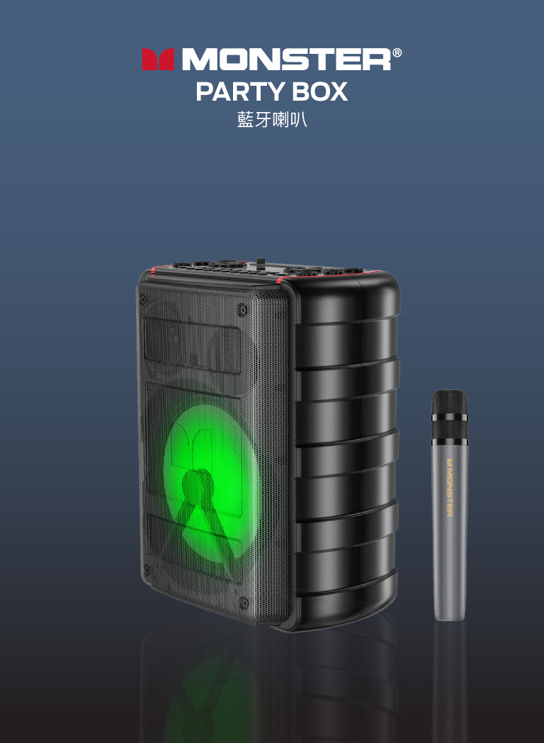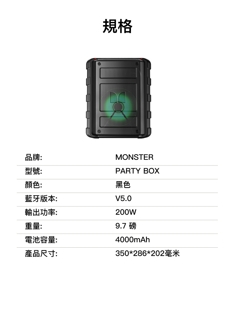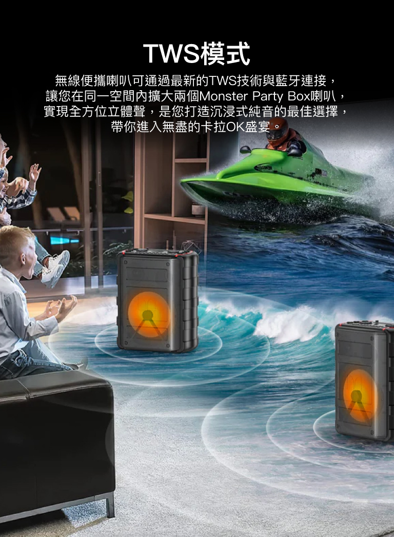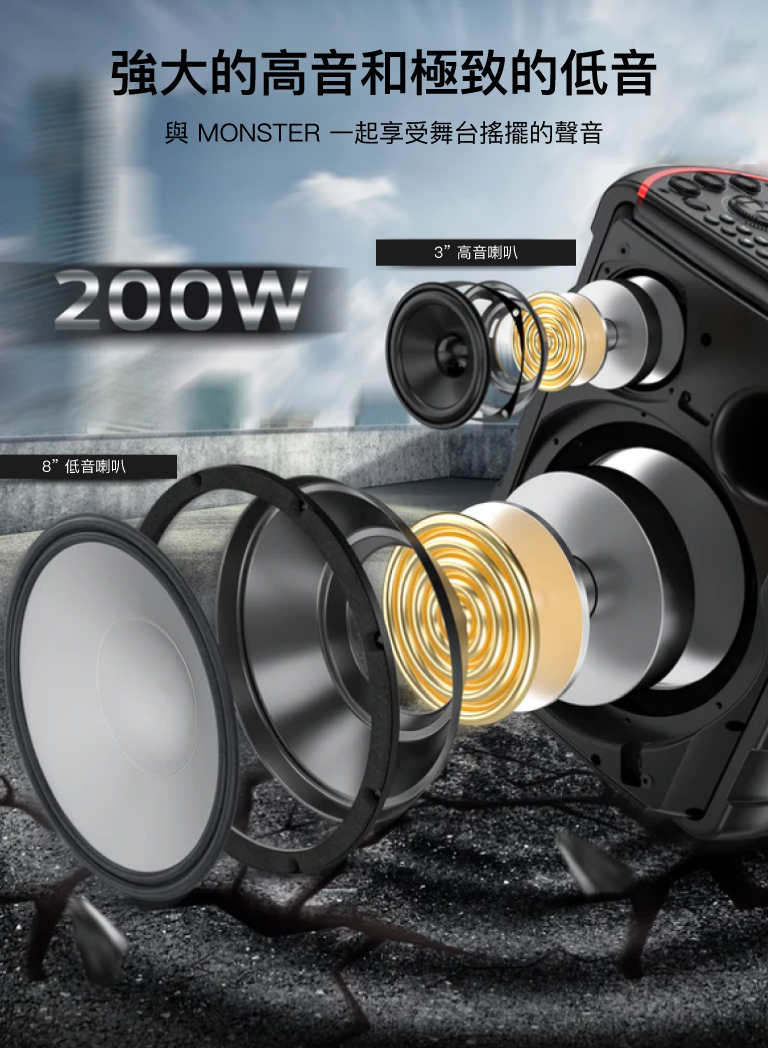 MONSTER Party Box 200W 便攜式藍牙音箱帶無線麥克風,無線揚聲器卡拉 OK 機帶 LED 燈,唱歌機支持 TF 卡,AUX,戶外派對的吉他端口