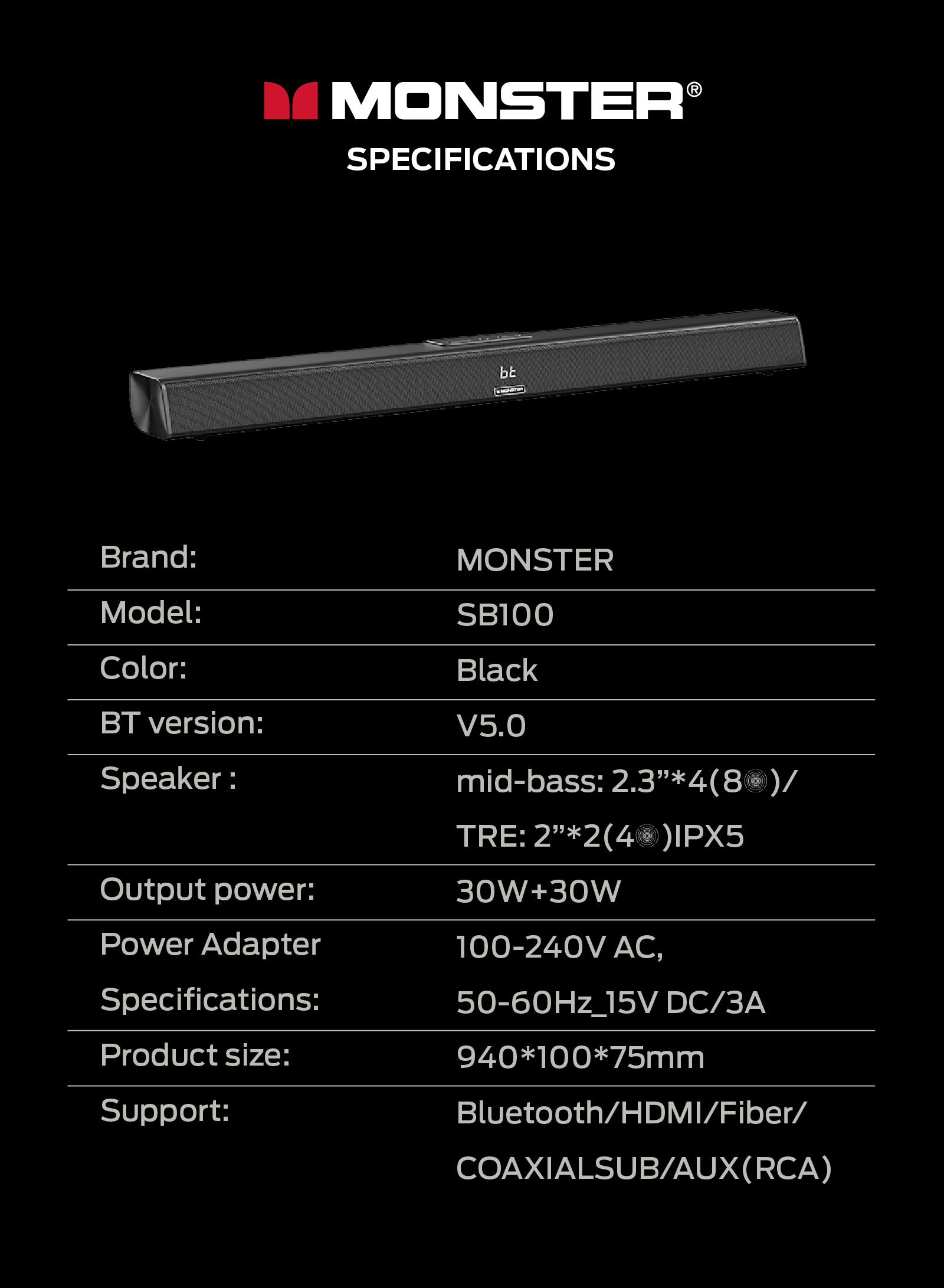 Monster Soundbar SB100為你帶來電影院般的震撼體驗
