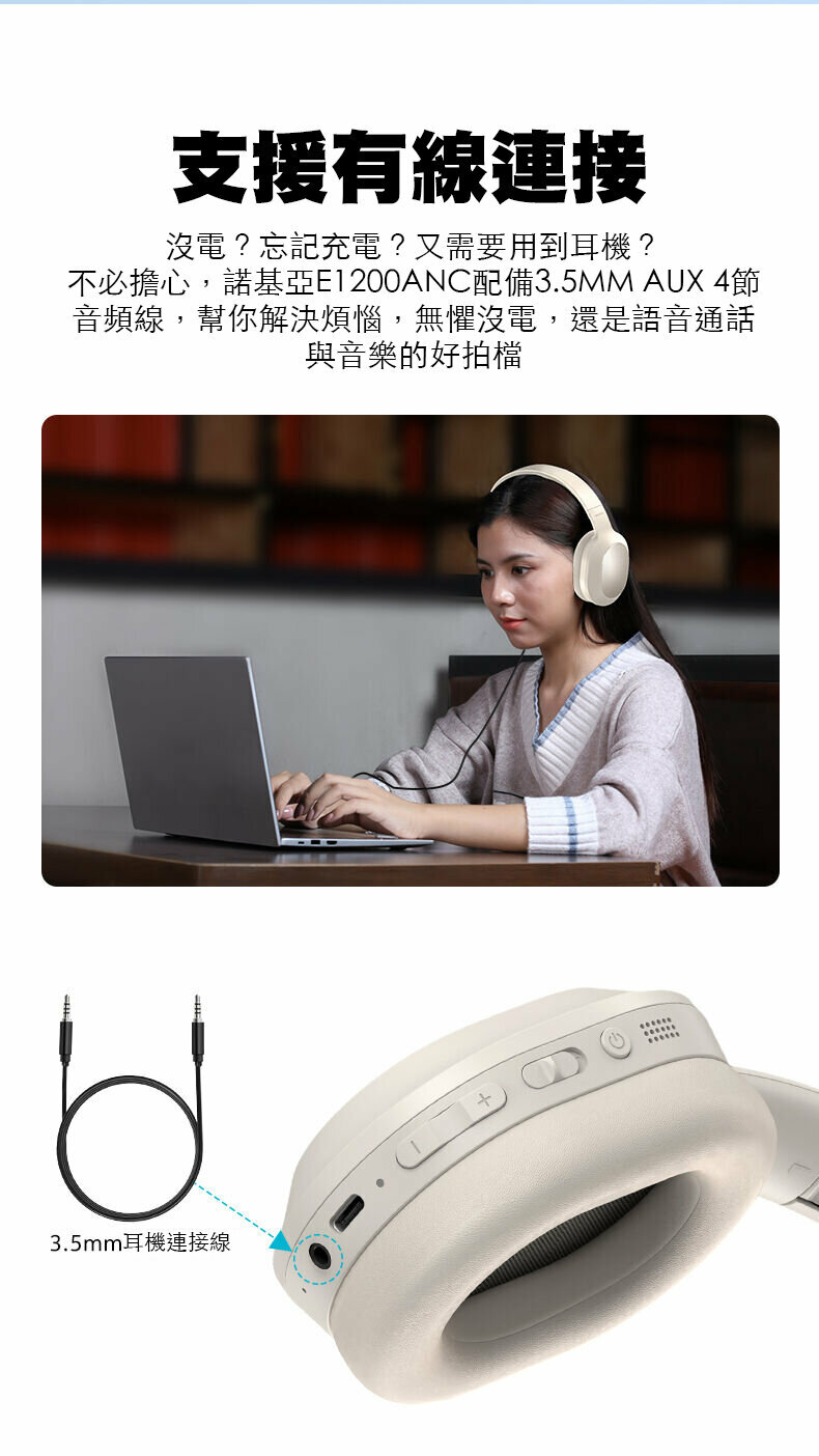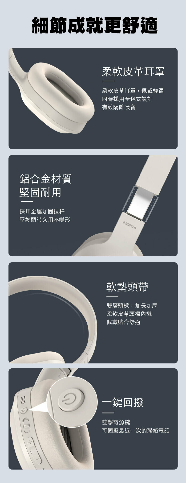 - 陽極氧化鋁合金面蓋堅固耐用,PU皮革耳墊舒適佩戴