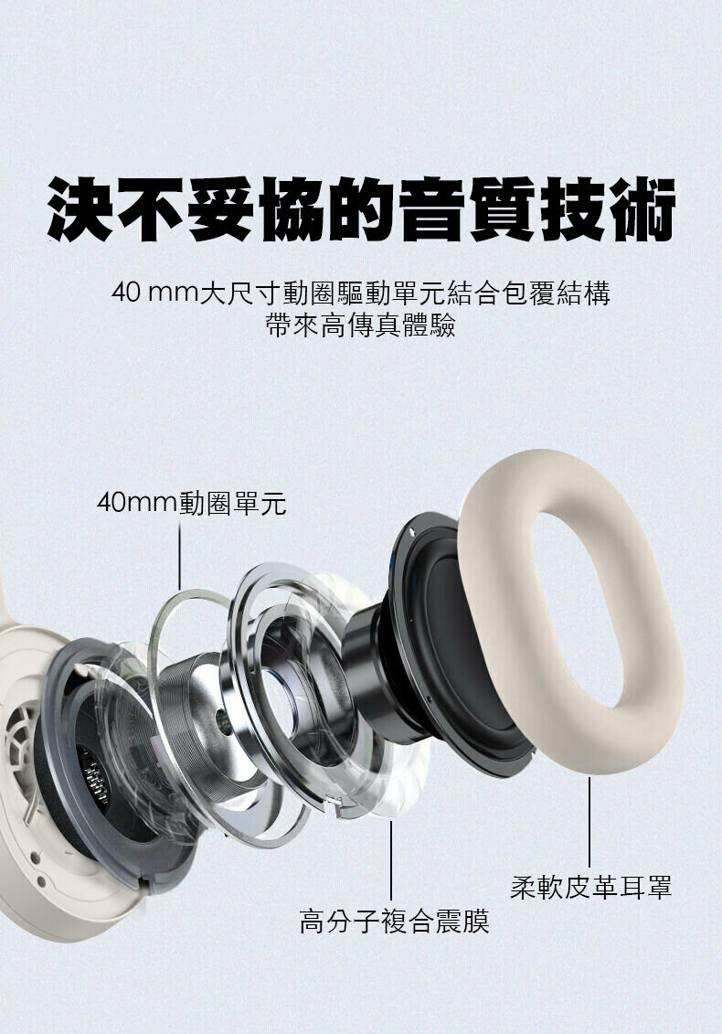 - 40mm大動圈單元,為您提供清晰豐富的音樂體驗