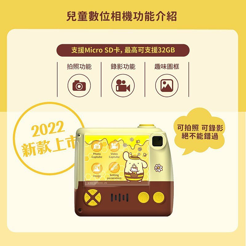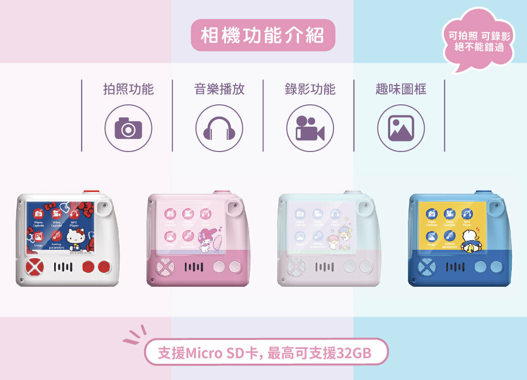 1200 萬像素 ; 內建多款授權可愛圖框 ; 附送專屬吊繩