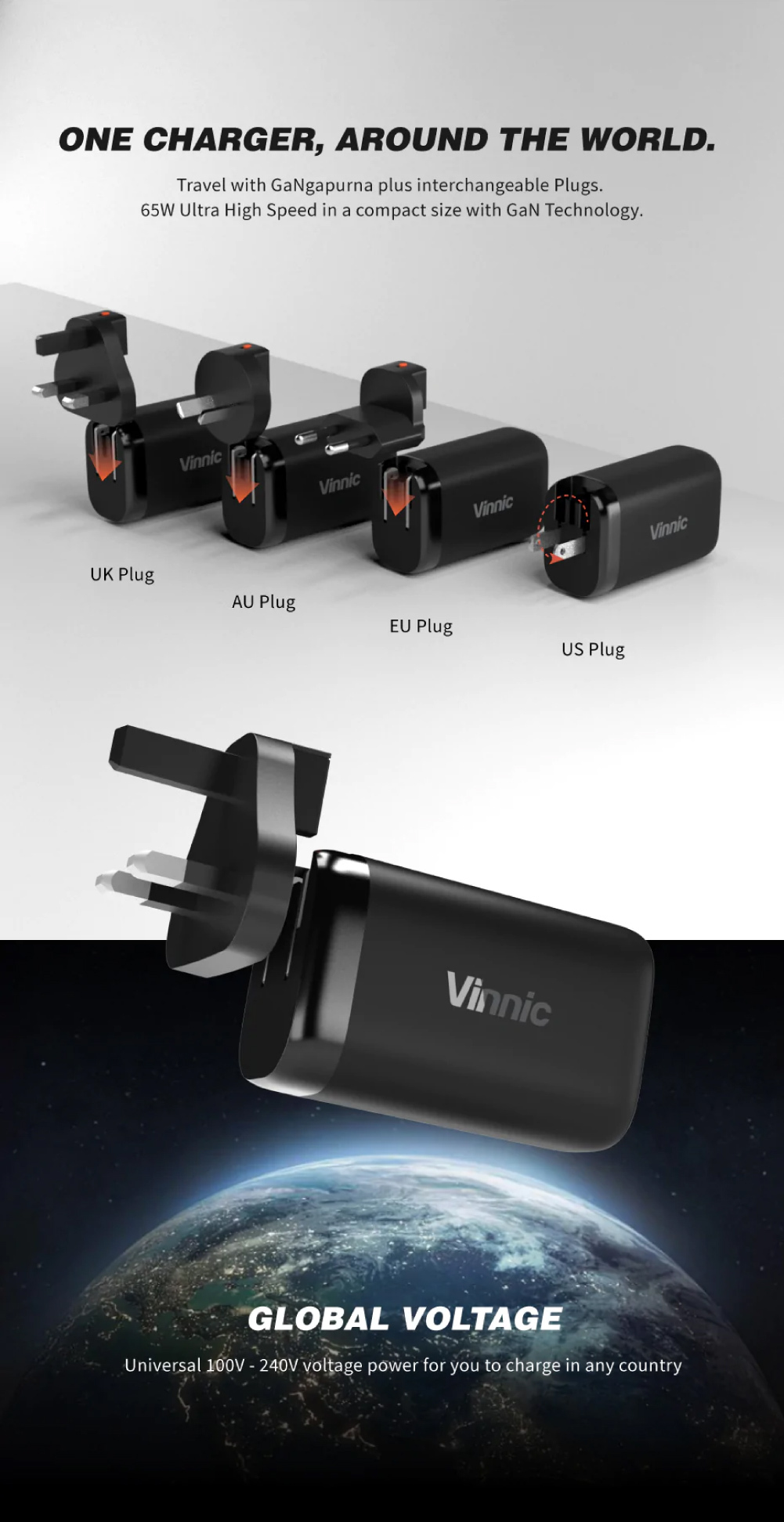 * GaNgapurna 3 端口 65W GaN 充電器 x 1